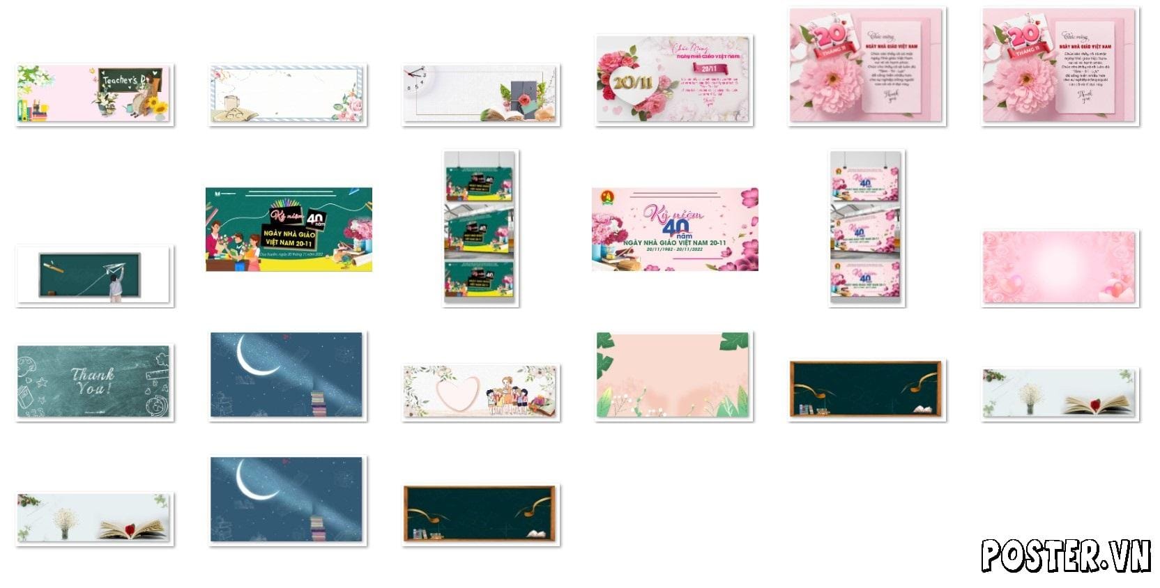 Đừng bỏ lỡ cơ hội tạo nên một không gian lễ kỷ niệm Ngày Nhà giáo Việt Nam trang trọng, ý nghĩa và đầy cảm hứng với bộ sưu tập 12+ mẫu backdrop kỷ niệm 20-11 đẹp, sáng tạo và độc đáo nhất 2025 từ Thư viện đồ họa Poster.vn. Hãy truy cập Poster.vn ngay hôm nay để khám phá và tải về những tài nguyên tuyệt vời nhất, hoặc nâng cấp các gói thành viên VIP phù hợp để tải ảnh không giới hạn tại link: https://poster.vn/vi/danh-muc-san-pham/membership/. Nếu bạn cần tư vấn thêm về cách chọn, thiết kế hay in phông nền 20/11, đội ngũ chuyên nghiệp của chúng tôi luôn sẵn lòng hỗ trợ qua Hotline: 0813.6666.73 hoặc ghé thăm địa chỉ: HaTay Millenium, 4 Đ. Quang Trung, P. Yết Kiêu, Hà Đông, Hà Nội. Chúng tôi tin rằng, với sự hỗ trợ của Thư viện đồ họa Poster.vn, các sự kiện của bạn sẽ đạt hiệu quả vượt trội, được đông đảo đối tượng chia sẻ, lưu lại và ghim bài, tạo nên sức lan tỏa mạnh mẽ trên các nền tảng, tôn vinh giá trị và vẻ đẹp của người phụ nữ Việt Nam.