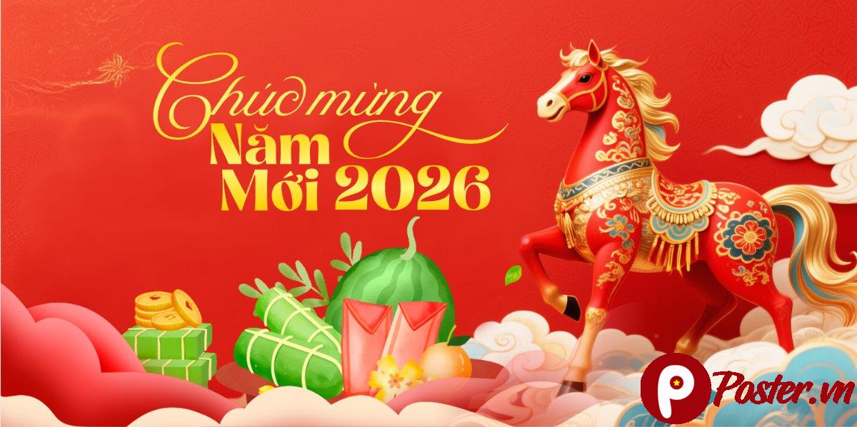Tải ngay Backdrop Tết 2026 Đinh Tỵ tại Poster.vn