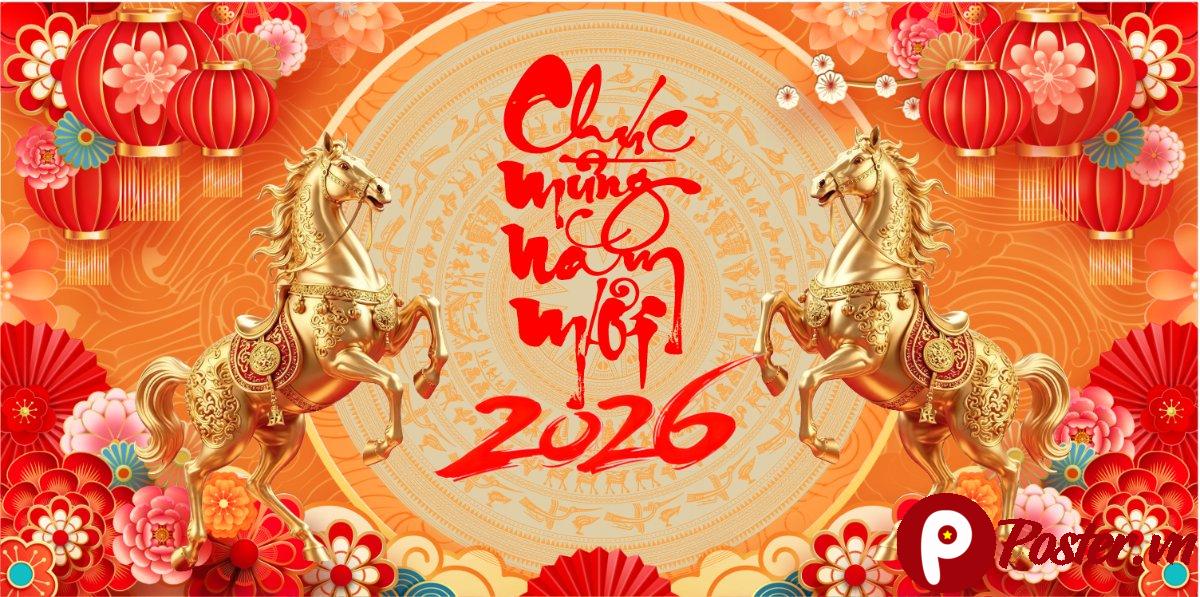Chào đón năm mới 2026 với sự rực rỡ và may mắn cùng mẫu Backdrop Tết 2026 độc đáo từ Poster.vn. Đây là một tài nguyên đồ họa không thể thiếu cho các sự kiện, cửa hàng, hay không gian trang trí Tết, giúp bạn tạo ấn tượng mạnh mẽ và thu hút mọi ánh nhìn.