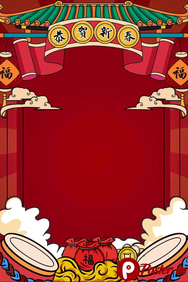Mẫu backdrop này không chỉ đơn thuần là một hình ảnh trang trí mà còn chứa đựng nhiều ý nghĩa sâu sắc. Màu đỏ rực rỡ tượng trưng cho niềm vui, sự may mắn và xua đuổi những điều không tốt lành. Các chi tiết như câu đối “Chúc Mừng Năm Mới”, đèn lồng đỏ và những túi tiền vàng mang ý nghĩa về tài lộc, sung túc và hạnh phúc viên mãn cho một năm mới an lành.