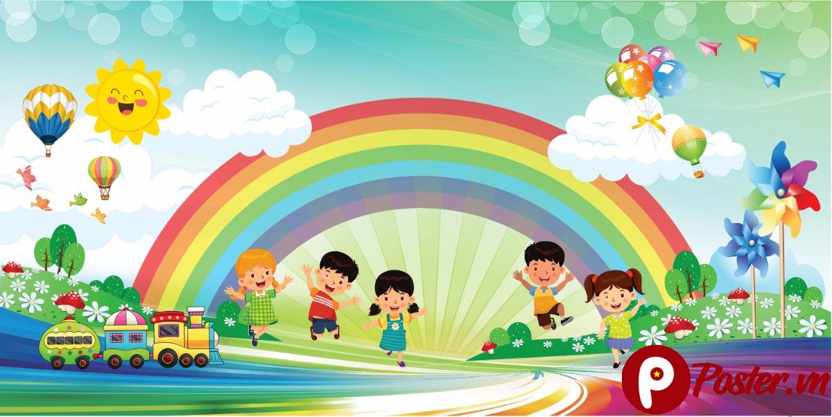 Background Mầm Non Đáng Yêu. Khám phá bộ sưu tập background mầm non đáng yêu tại Poster.vn, với hình ảnh cầu vồng, trẻ em vui chơi và nhiều chi tiết sinh động, hoàn hảo cho các thiết kế trường học và sự kiện thiếu nhi.