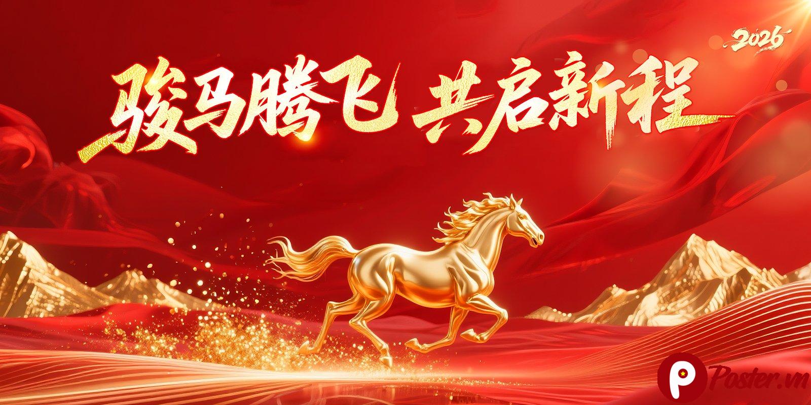 Năm 2026 là năm Bính Ngọ – năm của những chú ngựa mạnh mẽ, kiên cường và đầy nhiệt huyết. Để chào đón một năm mới rực rỡ, Poster.vn xin giới thiệu mẫu Background Tết 2026 với chủ đề ‘Mã Đáo Thành Công’. Đây không chỉ là một bức hình nền đơn thuần mà là một tác phẩm nghệ thuật kỹ thuật số, kết hợp hoàn hảo giữa nét truyền thống Trung Hoa và phong cách thiết kế hiện đại, sang trọng. Với gam màu đỏ rực rỡ và vàng kim loại sáng bóng, mẫu thiết kế này tượng trưng cho sự may mắn, thịnh vượng và những bước tiến vượt bậc trong sự nghiệp.