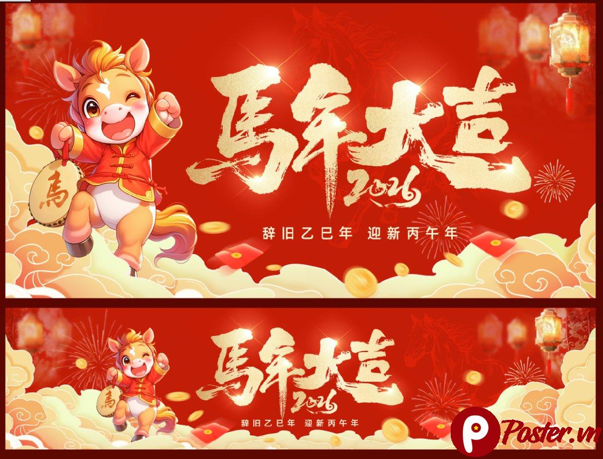 Mẫu banner Tết Giáp Thìn 2024 của Poster.vn được lấy cảm hứng từ hình ảnh chú ngựa, biểu tượng của sự mạnh mẽ, kiên cường và may mắn trong văn hóa Á Đông. Với phong cách hoạt hình đáng yêu, chú ngựa trong thiết kế này mang đến sự tươi mới, năng động và tràn đầy sức sống, rất phù hợp với không khí vui tươi của ngày Tết.