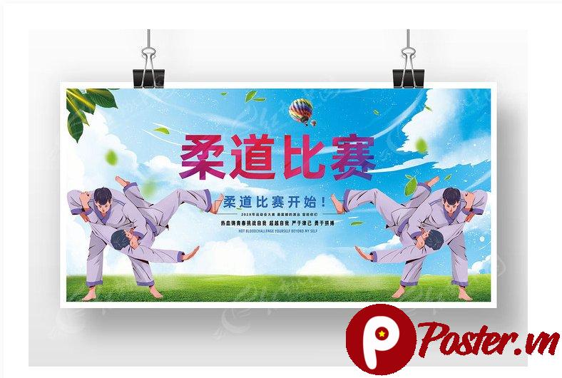 Mẫu banner thi đấu Judo này không chỉ là một ấn phẩm quảng cáo mà còn là một tác phẩm nghệ thuật, góp phần nâng tầm sự kiện của bạn. Hãy tải ngay tài nguyên này từ Poster.vn để tạo nên một giải đấu Judo đáng nhớ và chuyên nghiệp!