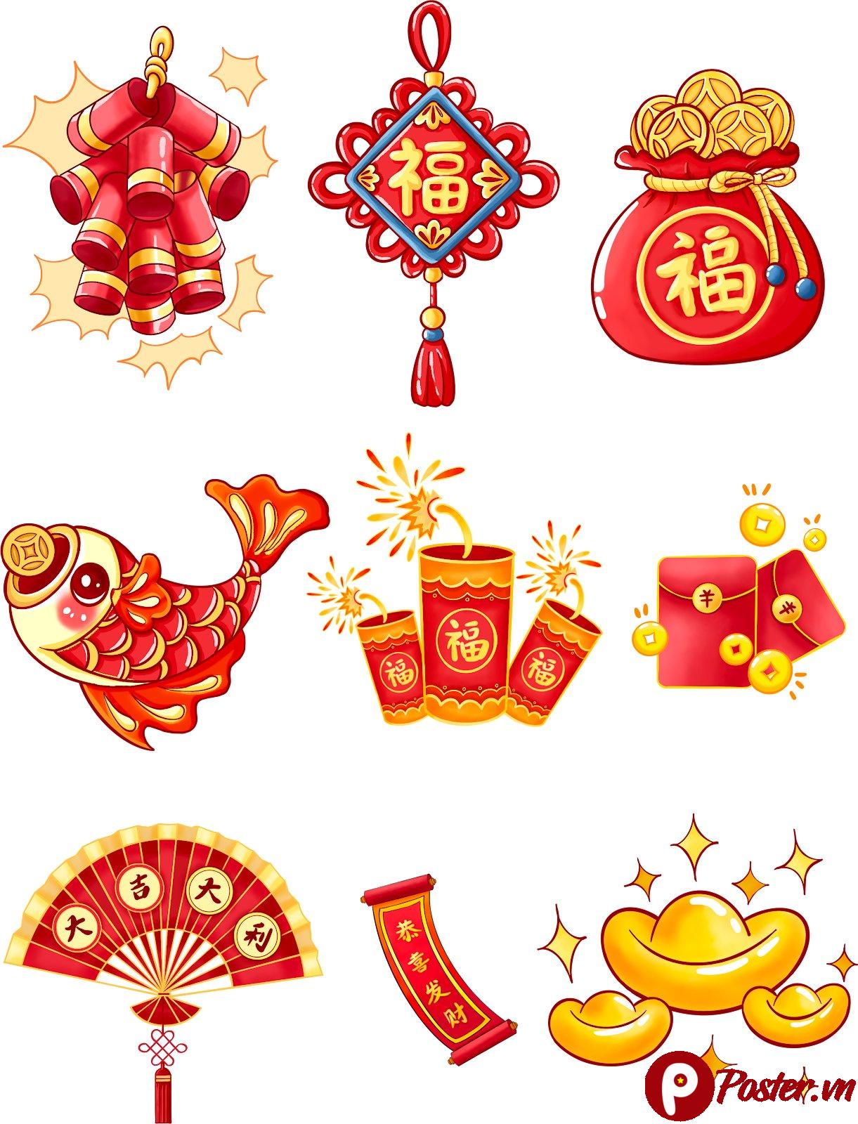 - Biểu tượng Tết phong phú và ý nghĩa: Bộ sưu tập bao gồm chín biểu tượng chính, mỗi biểu tượng đều mang một ý nghĩa sâu sắc: