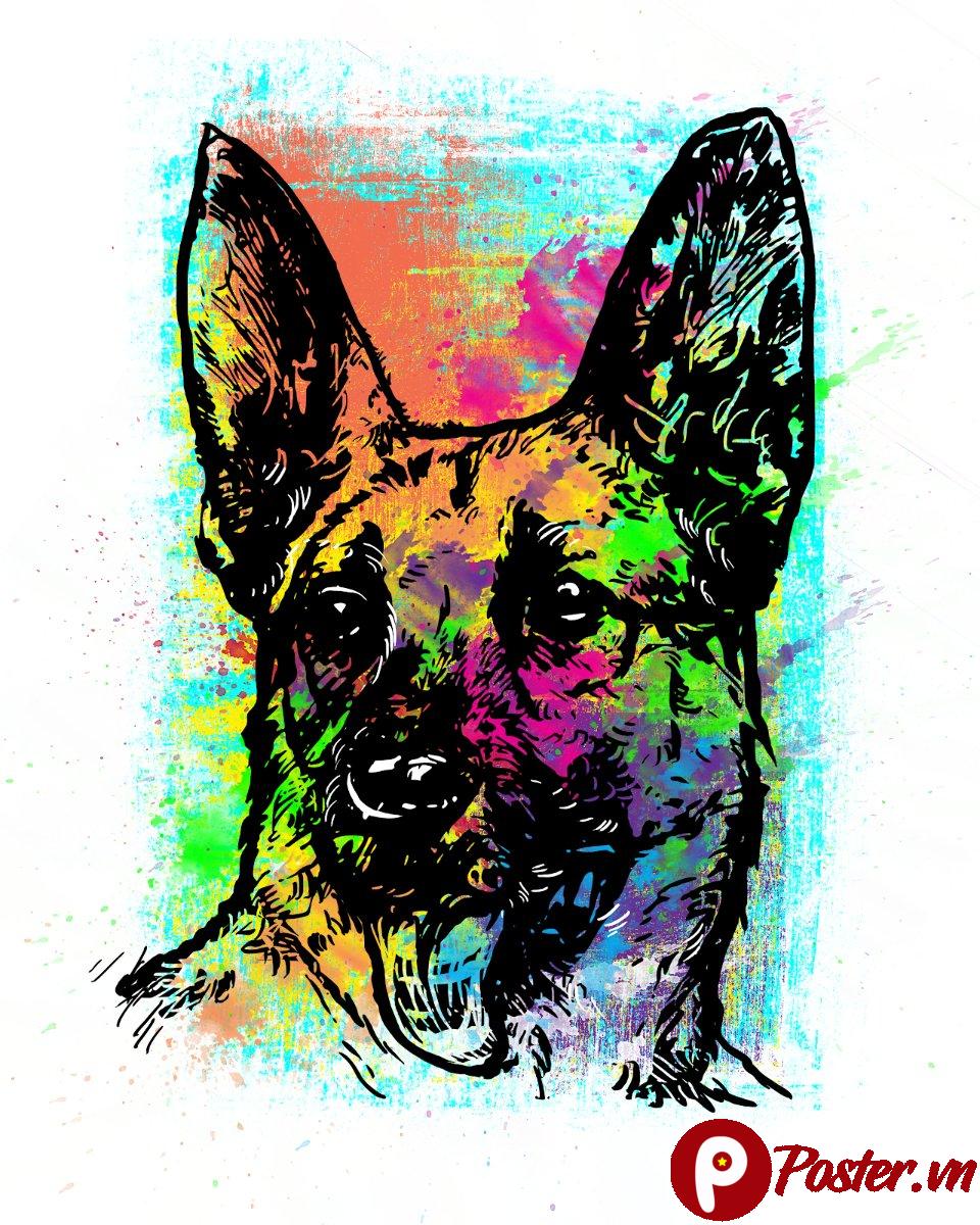 Chó Becgie (German Shepherd) luôn được biết đến là một trong những giống chó thông minh, trung thành và mạnh mẽ nhất. Với vẻ ngoài oai vệ, đôi tai dựng đứng và ánh mắt sắc sảo, chúng thường được sử dụng trong các công việc bảo vệ, nghiệp vụ. Khi được thể hiện dưới phong cách Pop Art, hình ảnh chó Becgie không chỉ giữ được sự uy nghi vốn có mà còn được thổi hồn bằng một năng lượng mới, trẻ trung và hiện đại hơn. Đây là một lựa chọn tuyệt vời cho những ai yêu thích sự kết hợp giữa vẻ đẹp cổ điển và nét phá cách đương đại.