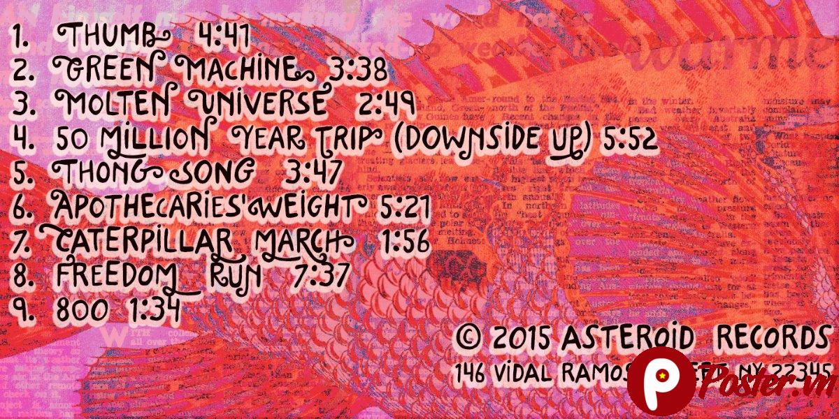 Các tựa đề bài hát như “Thumb”, “Green Machine” hay “Molten Universe” gợi lên sự tò mò và hứa hẹn những giai điệu độc đáo. Đặc biệt, “50 Million Year Trip (Downside Up)” với thời lượng gần 6 phút cho thấy đây có thể là một bản nhạc phức tạp, nhiều lớp lang, đòi hỏi sự tập trung từ người nghe. Trong khi đó, “800” lại là một ca khúc ngắn gọn, có thể đóng vai trò như một đoạn chuyển tiếp hoặc một điểm nhấn bất ngờ.