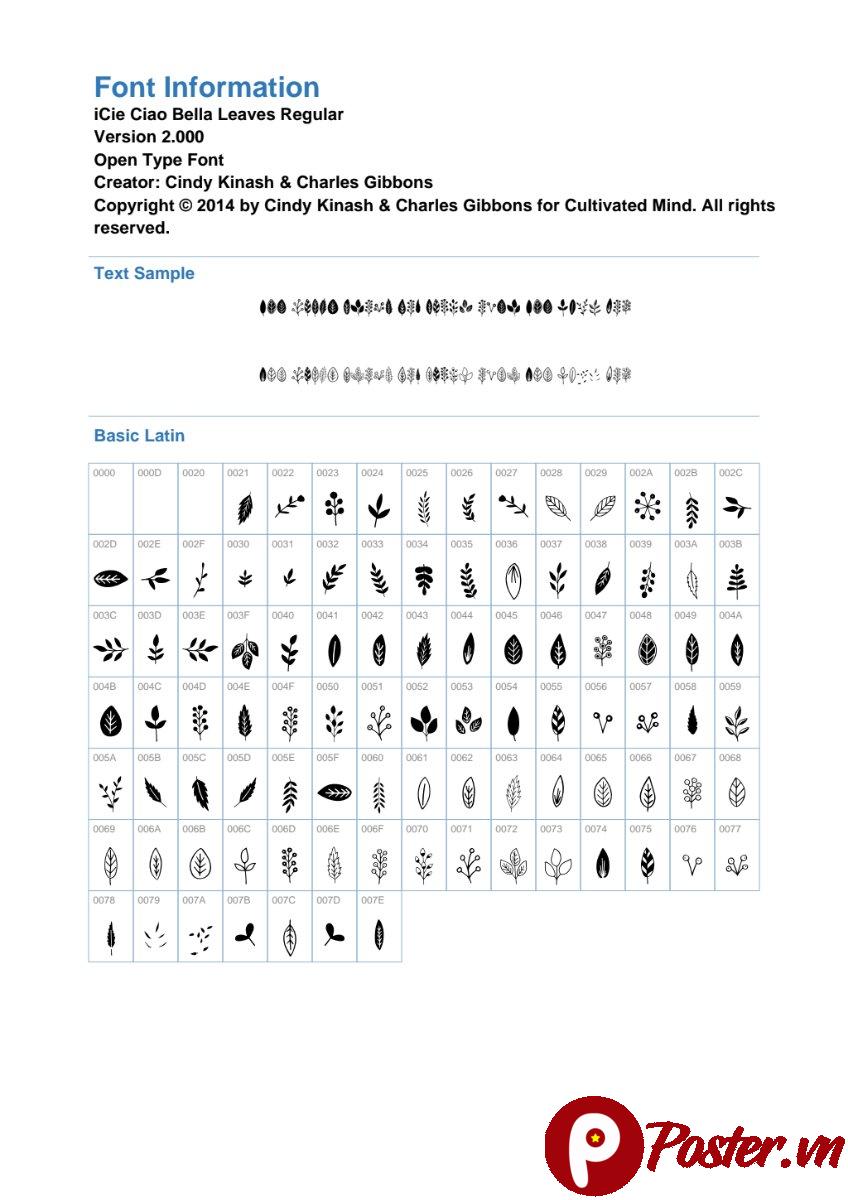 Font Ciao Bella Leaves Độc Đáo. Khám phá font Ciao Bella Leaves với bộ ký tự lá cây độc đáo, hoàn hảo cho thiết kế tự nhiên, thiệp mời, logo và các dự án sáng tạo. Tải ngay tại Poster.vn để tạo điểm nhấn khác biệt cho tác phẩm của bạn.