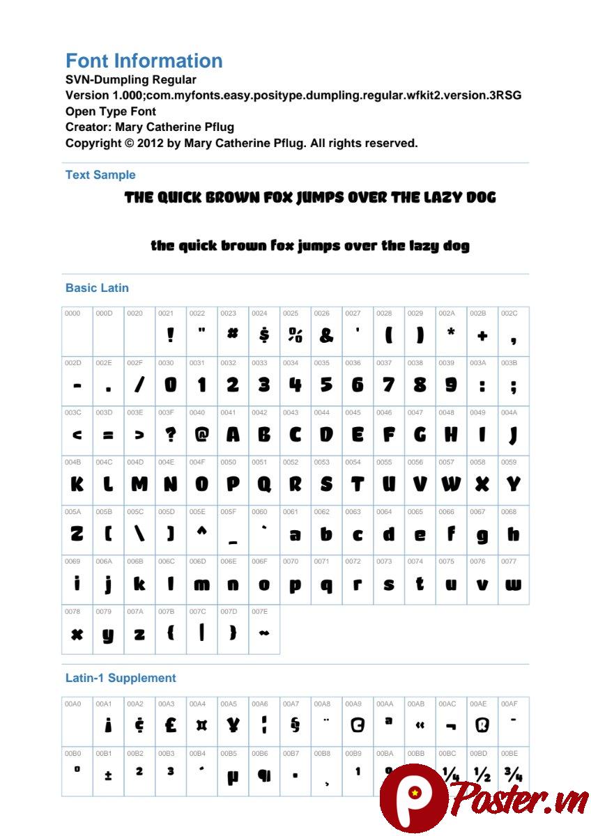 Poster.vn là địa chỉ tin cậy cung cấp các tài nguyên thiết kế đồ họa chất lượng cao, đa dạng và luôn được cập nhật. Khi tải Font Dumpling Regular tại Poster.vn, bạn sẽ nhận được: