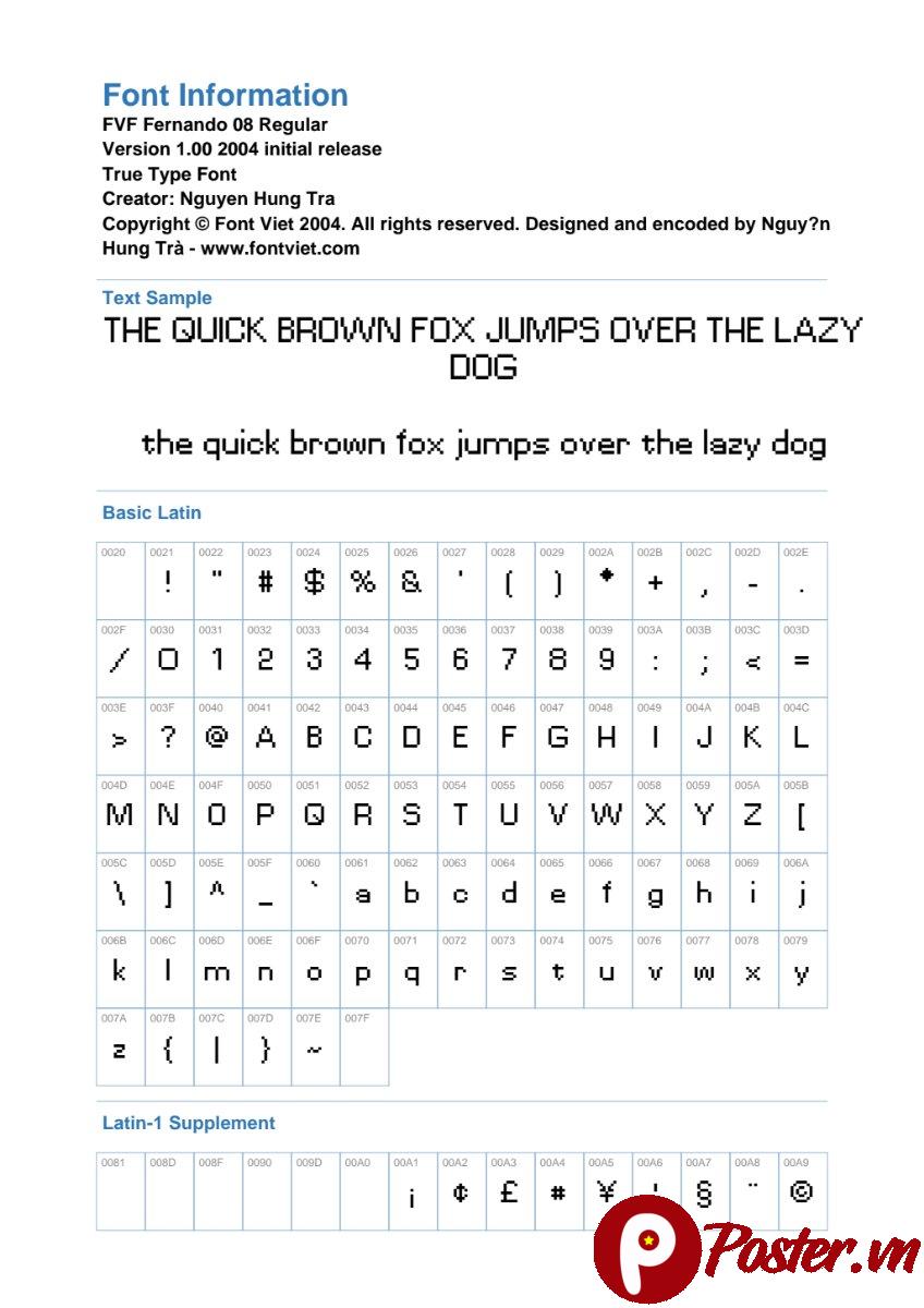 Bạn có thể xem bảng ký tự trong phần thông tin font hoặc thử nghiệm trực tiếp để kiểm tra khả năng hỗ trợ tiếng Việt của Font FVF Fernando 08.