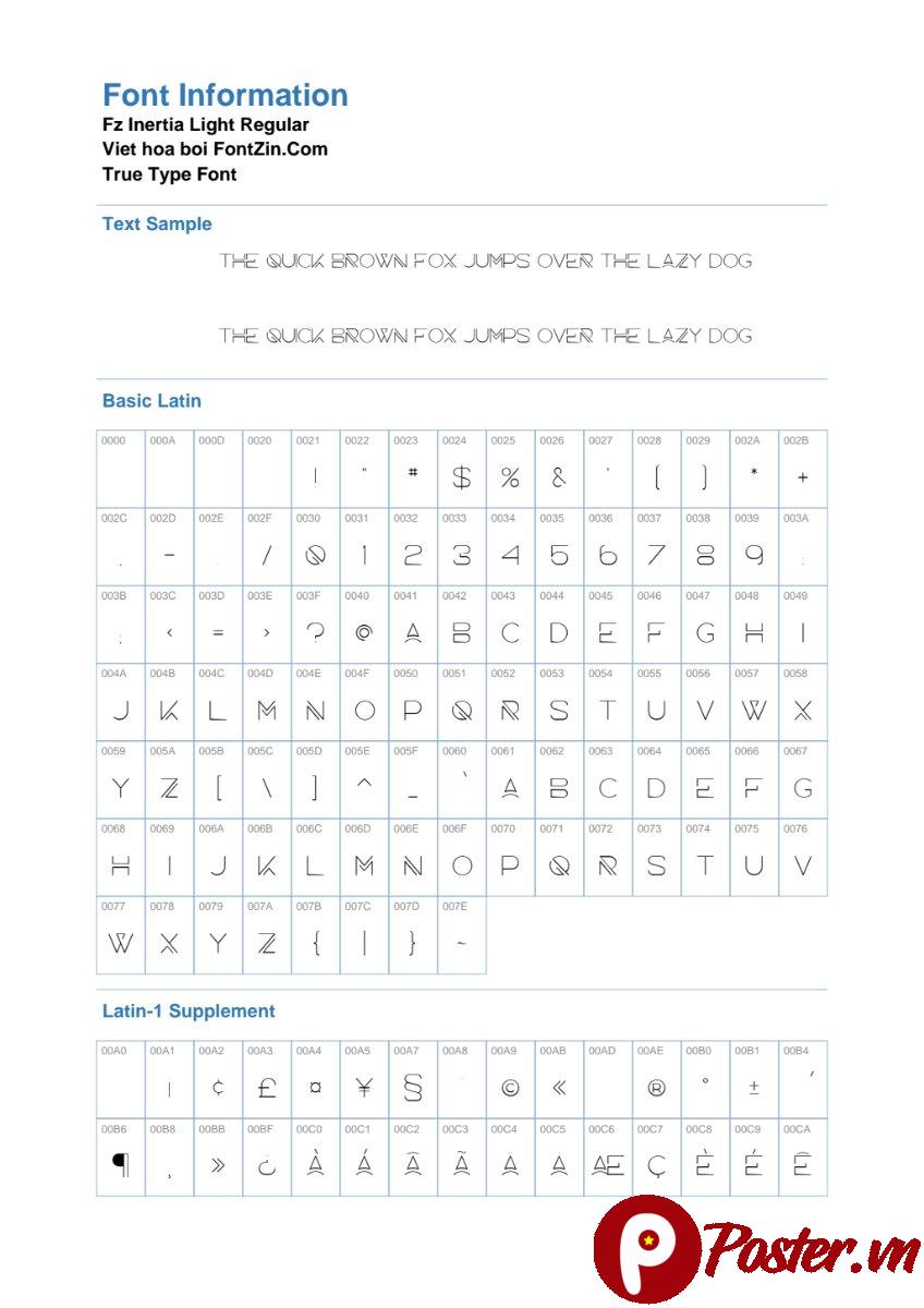 Trong thế giới thiết kế đồ họa, việc lựa chọn font chữ phù hợp đóng vai trò cực kỳ quan trọng, quyết định đến tính thẩm mỹ và thông điệp mà tác phẩm muốn truyền tải. Hôm nay, Poster.vn hân hạnh giới thiệu đến bạn một tài nguyên font chữ độc đáo và tinh tế: Font Fz Inertia Light Regular. Với vẻ ngoài thanh lịch và hiện đại, font chữ này chắc chắn sẽ là một công cụ đắc lực cho mọi nhà thiết kế.