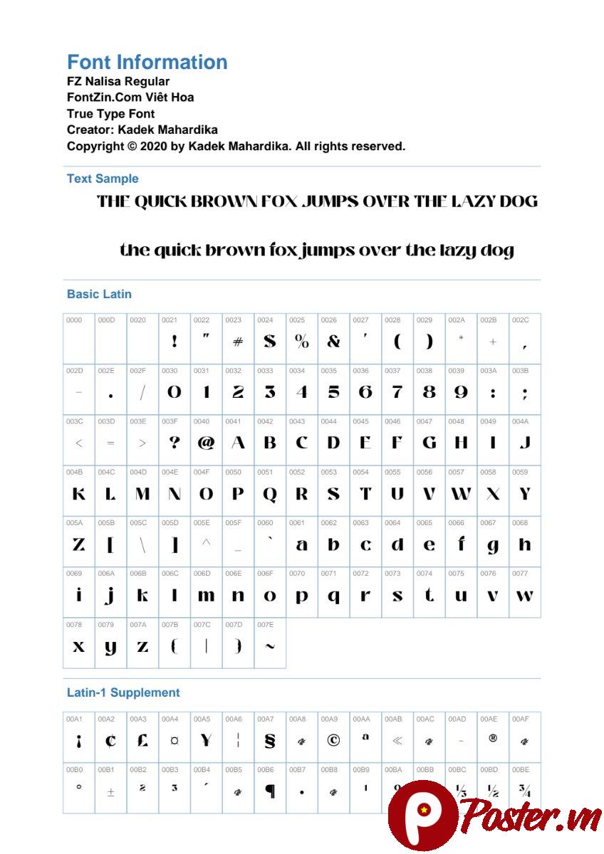 Font FZ Nalisa Regular là một tài nguyên font chữ tuyệt vời, mang đến sự chuyên nghiệp và độc đáo cho mọi dự án thiết kế. Với những ưu điểm vượt trội về thiết kế, tính linh hoạt và khả năng hỗ trợ tiếng Việt, đây chắc chắn sẽ là một lựa chọn không thể bỏ qua. Hãy truy cập Poster.vn ngay hôm nay để khám phá và tải về Font FZ Nalisa Regular cùng hàng ngàn tài nguyên thiết kế chất lượng cao khác. Nâng tầm tác phẩm của bạn với Poster.vn!