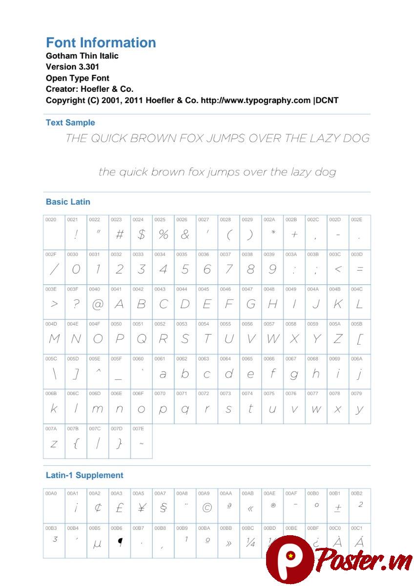 - Tải xuống: Truy cập Poster.vn, tìm kiếm “Gotham Thin Italic” và tải file về máy tính của bạn.