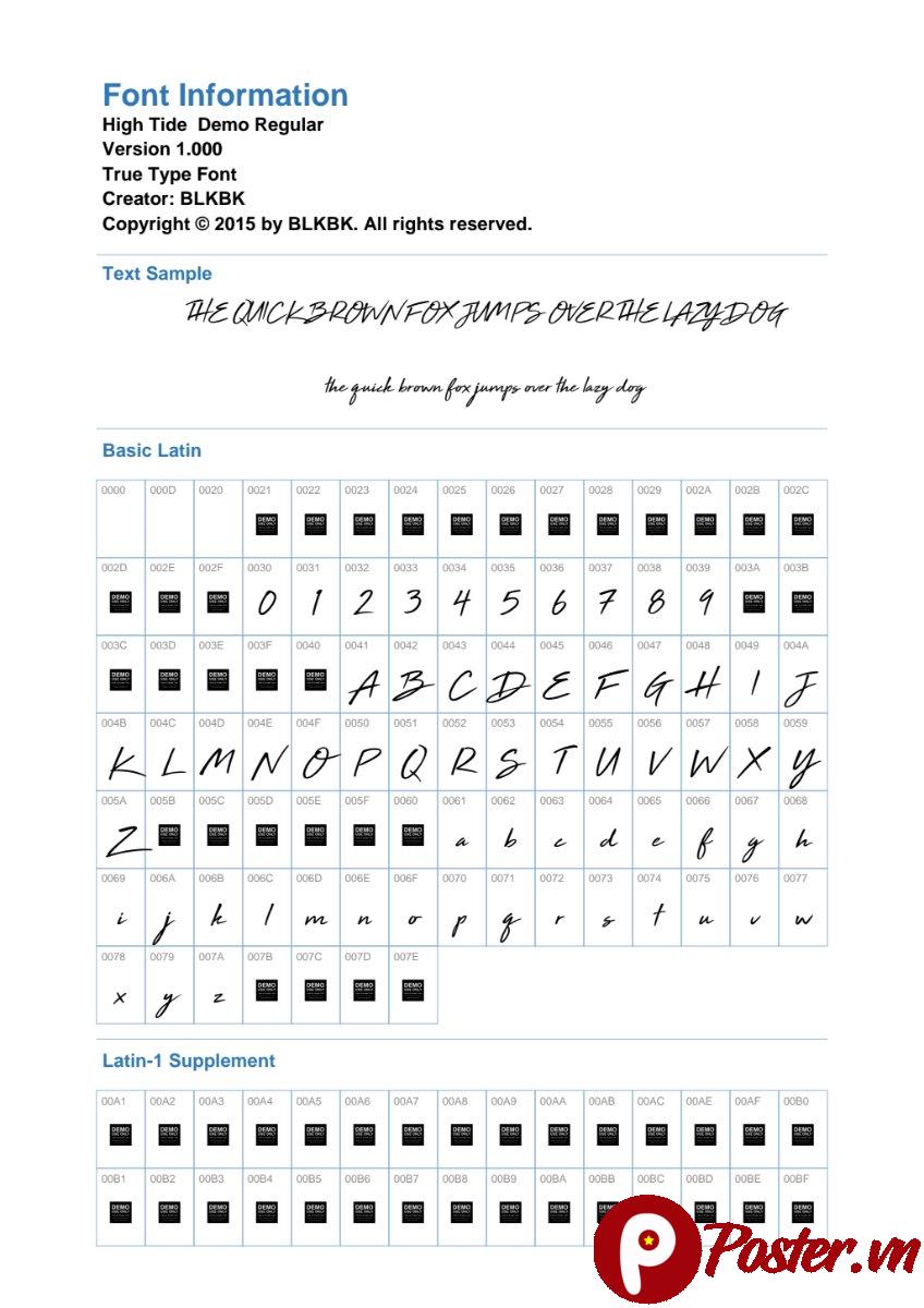 Hướng dẫn sử dụng Font High Tide Demo Regular từ Poster.vn