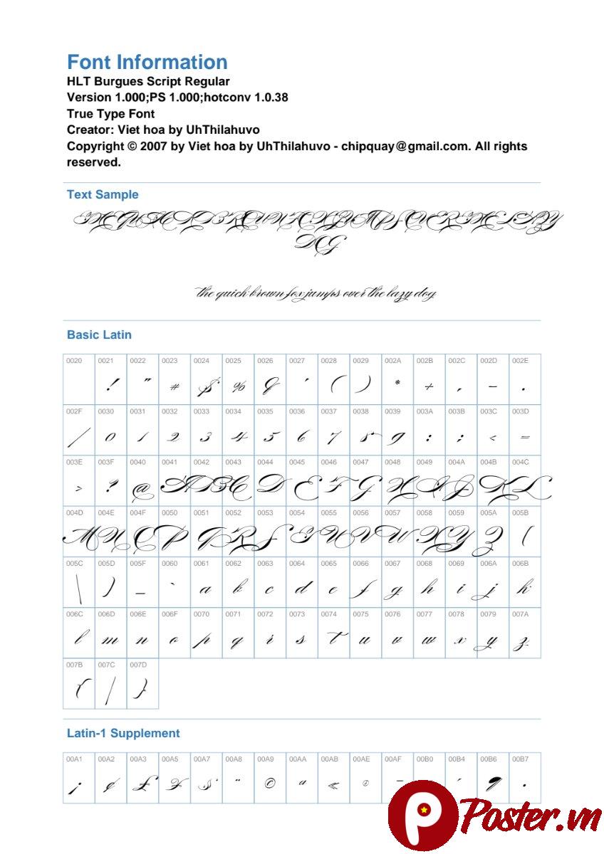 - Đa Dạng Ký Tự: HLT Burgues Script không chỉ hỗ trợ bảng chữ cái Latin cơ bản mà còn có nhiều ký tự đặc biệt, dấu câu và các biến thể chữ (swashes) giúp bạn thỏa sức sáng tạo.