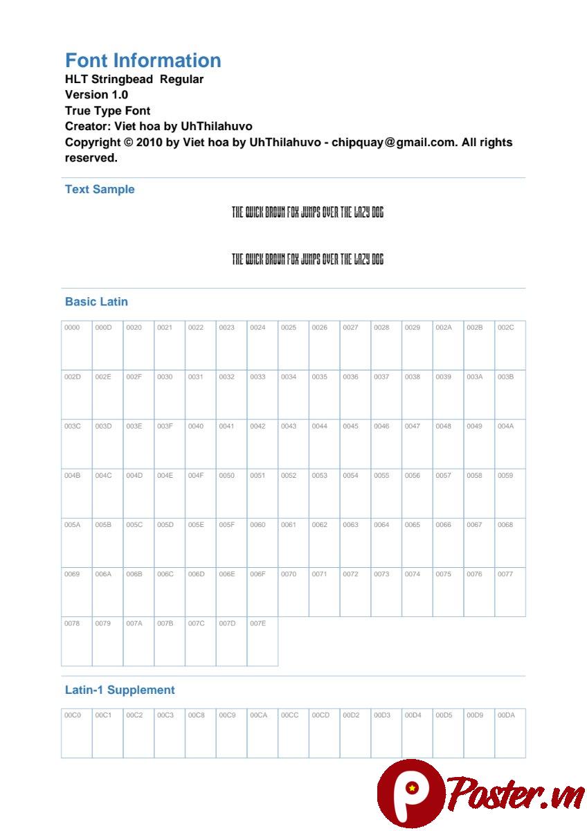 Font HLT Stringbead có hỗ trợ tiếng Việt không?