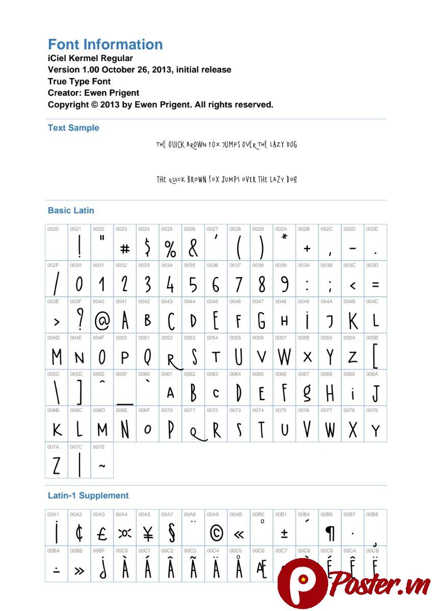 Poster.vn tự hào là nguồn tài nguyên thiết kế đồ họa uy tín, cung cấp hàng ngàn mẫu thiết kế chất lượng cao, đa dạng thể loại. Khi bạn lựa chọn tải font iCiel Kermel Regular từ Poster.vn, bạn sẽ nhận được: