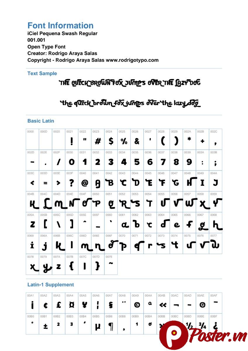 Hãy để Font iCiel Pequena Swash trở thành công cụ đắc lực giúp bạn tạo ra những tác phẩm thiết kế độc đáo, ấn tượng và đầy cá tính. Truy cập Poster.vn ngay hôm nay để khám phá và tải về font chữ tuyệt vời này!