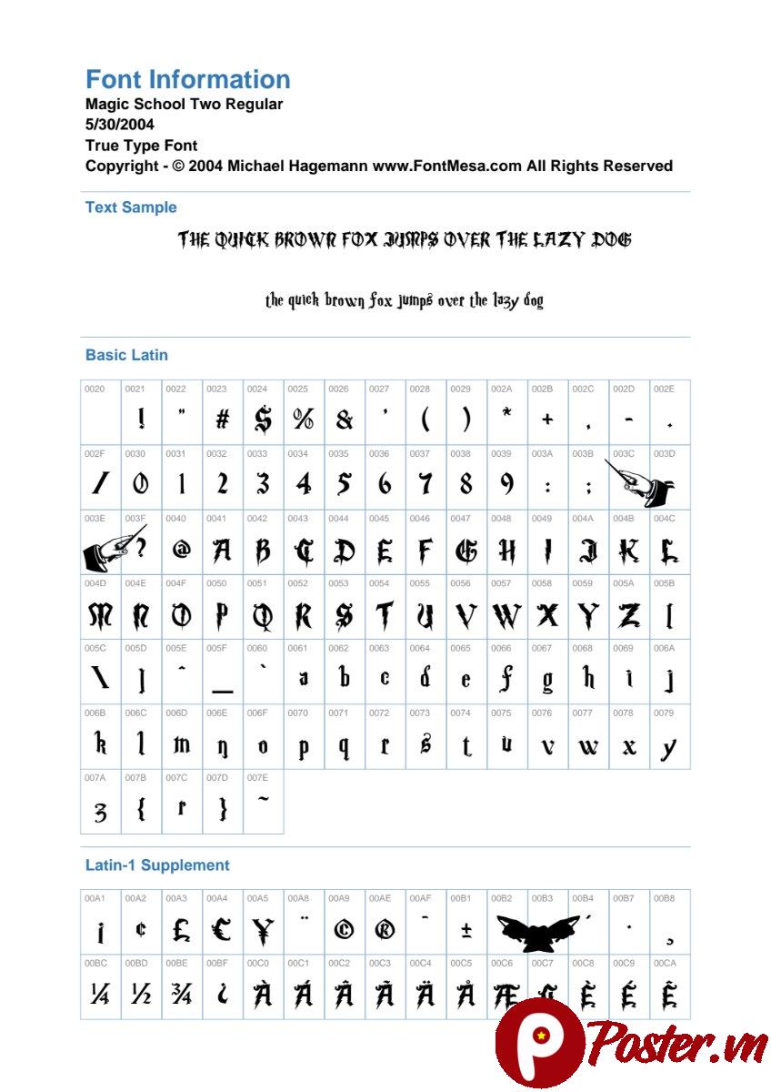 - Phong cách độc đáo: MagicSchoolTwo sở hữu những đường nét uốn lượn, góc cạnh đặc trưng, mang đến cảm giác cổ kính, bí ẩn và đầy ma thuật. Mỗi ký tự đều được chăm chút tỉ mỉ, tạo nên một tổng thể hài hòa và cuốn hút.