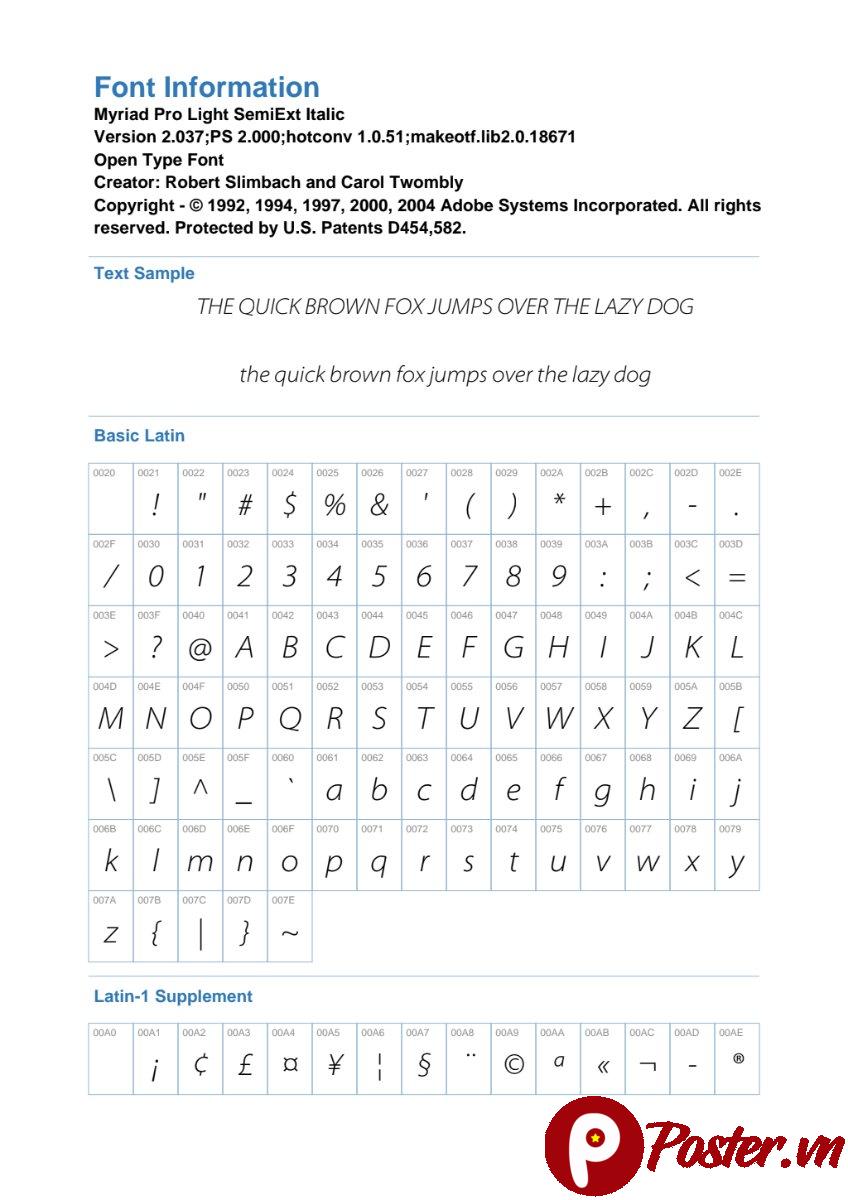 Poster.vn là địa chỉ uy tín cung cấp các tài nguyên thiết kế chất lượng cao, bao gồm cả font chữ. Khi tải Myriad Pro Light SemiExt Italic từ Poster.vn, bạn sẽ nhận được: