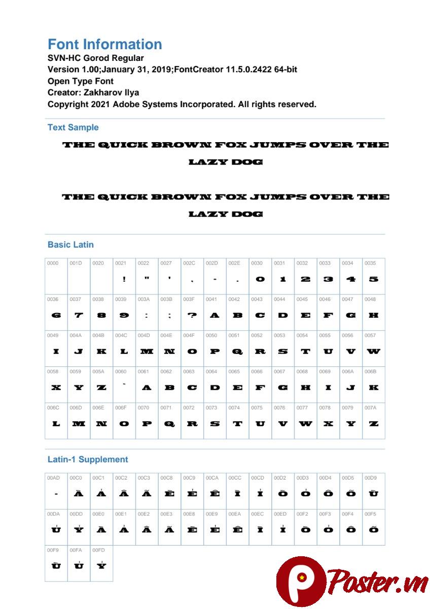 Font SVN-HC Gorod Đẹp, Độc Đáo. Khám phá Font SVN-HC Gorod, bộ font chữ độc đáo và mạnh mẽ, lý tưởng cho các thiết kế cần sự cá tính và ấn tượng. Tải ngay tại Poster.vn để nâng tầm dự án của bạn.