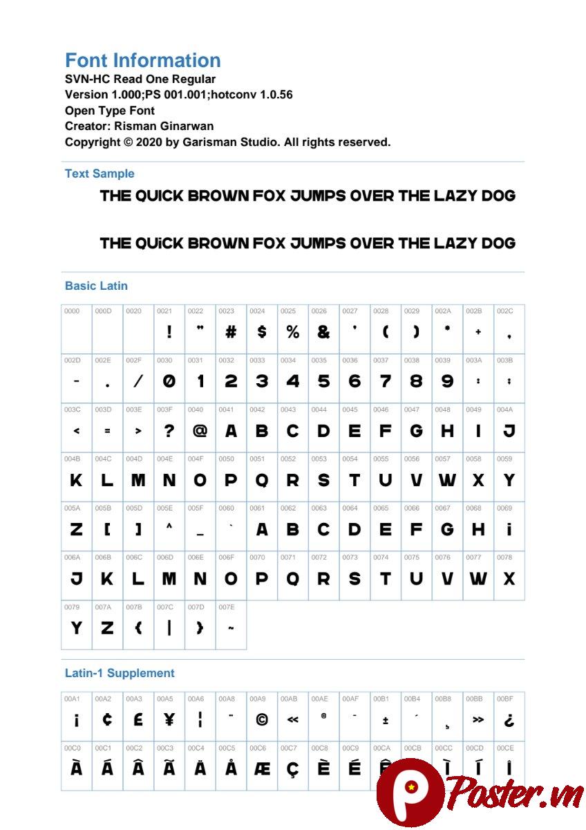 Font SVN-HC Read One là một kiểu chữ OpenType thuộc họ Sans-serif, được thiết kế bởi Risman Ginarwan và phát hành bởi Garisman Studio, nổi bật với phong cách mạnh mẽ, hiện đại và dễ đọc.