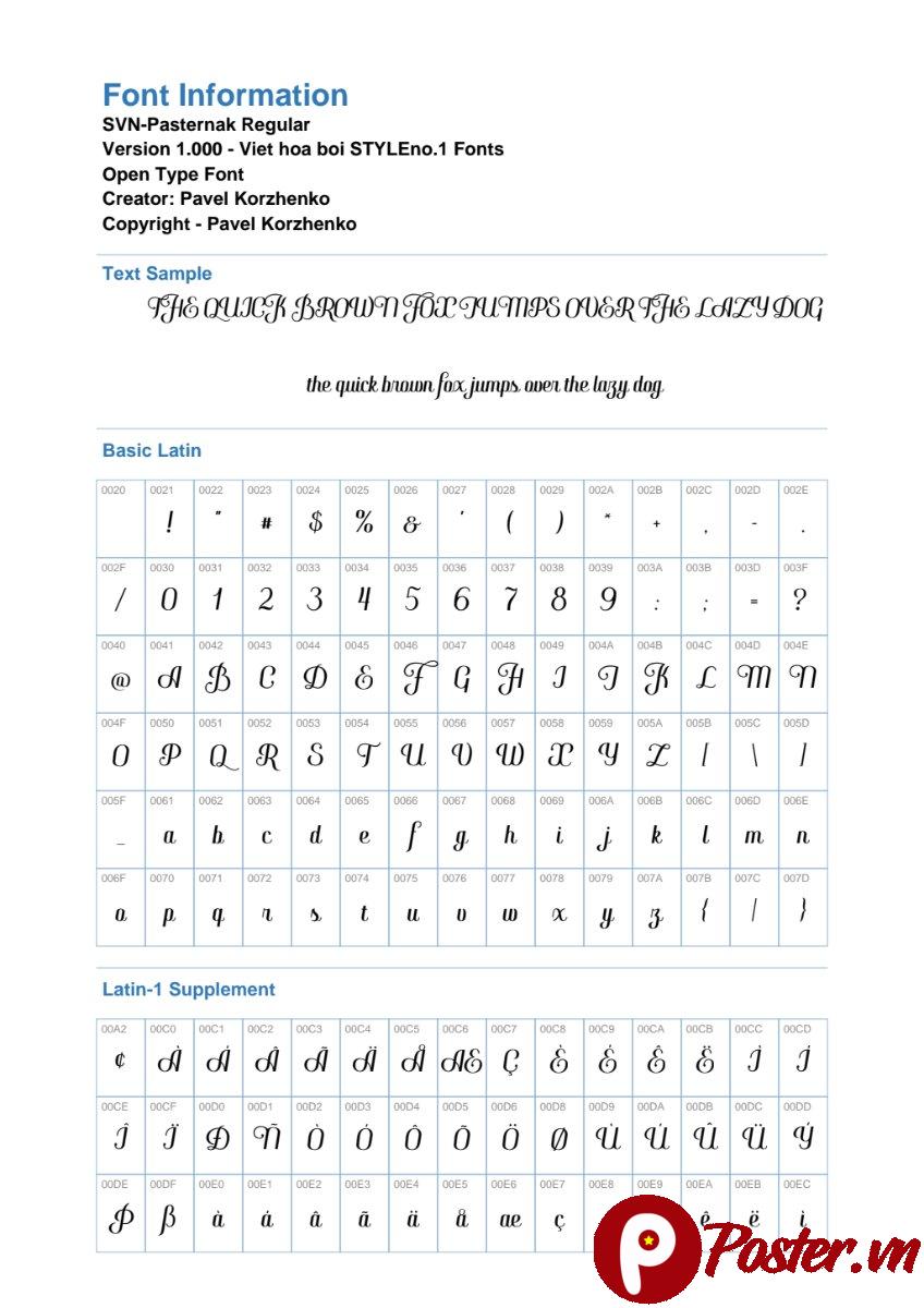 Tải Font SVN-Pasternak Việt hóa tại Poster.vn