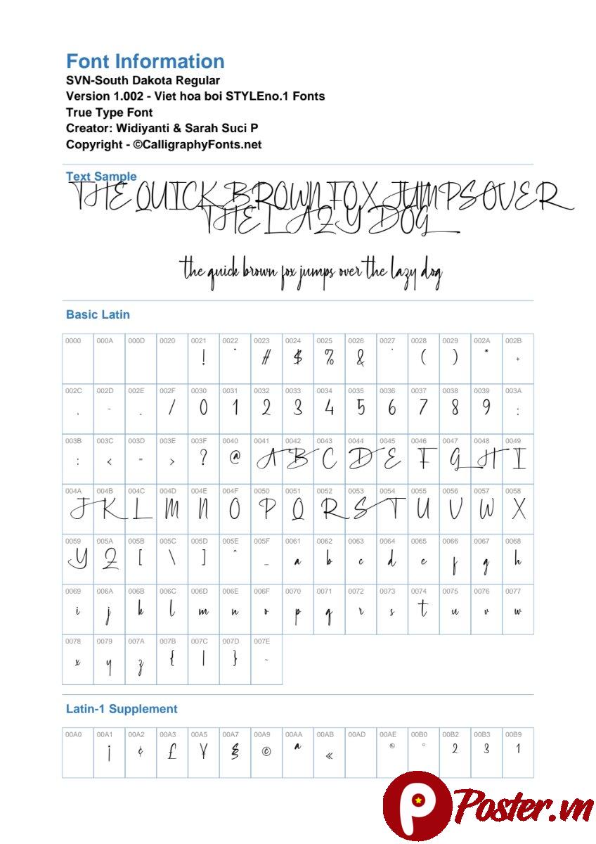 Font SVN-South Dakota là một phông chữ viết tay (handwritten font) với các nét chữ mềm mại, uyển chuyển, mang đến cảm giác tự nhiên và tinh tế.