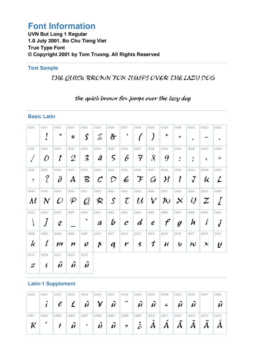 Hướng dẫn sử dụng Font UVN But Long 1 Regular