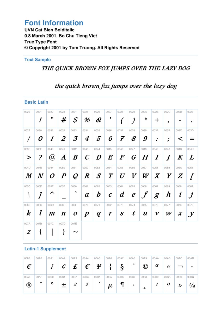Font UVN Cat Bien BoldItalic có hỗ trợ tiếng Việt không?