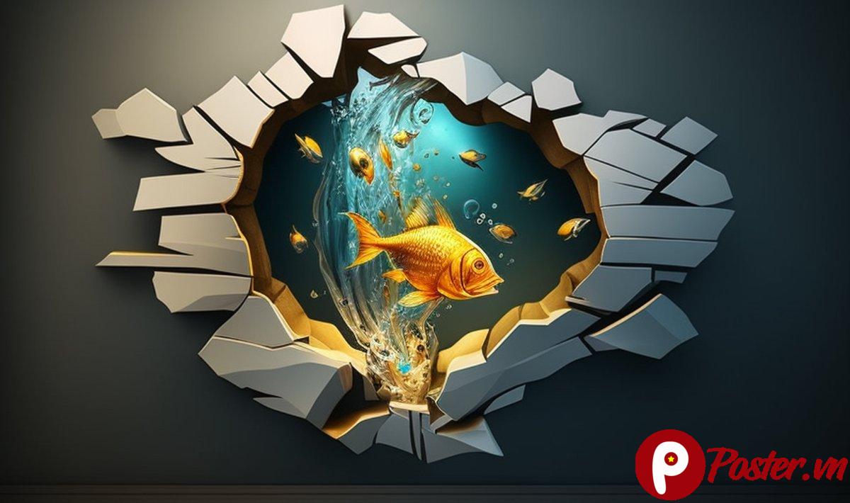 Tải Ngay Hiệu Ứng Cá Vàng Phá Vỡ Tường 3D Tại Poster.vn