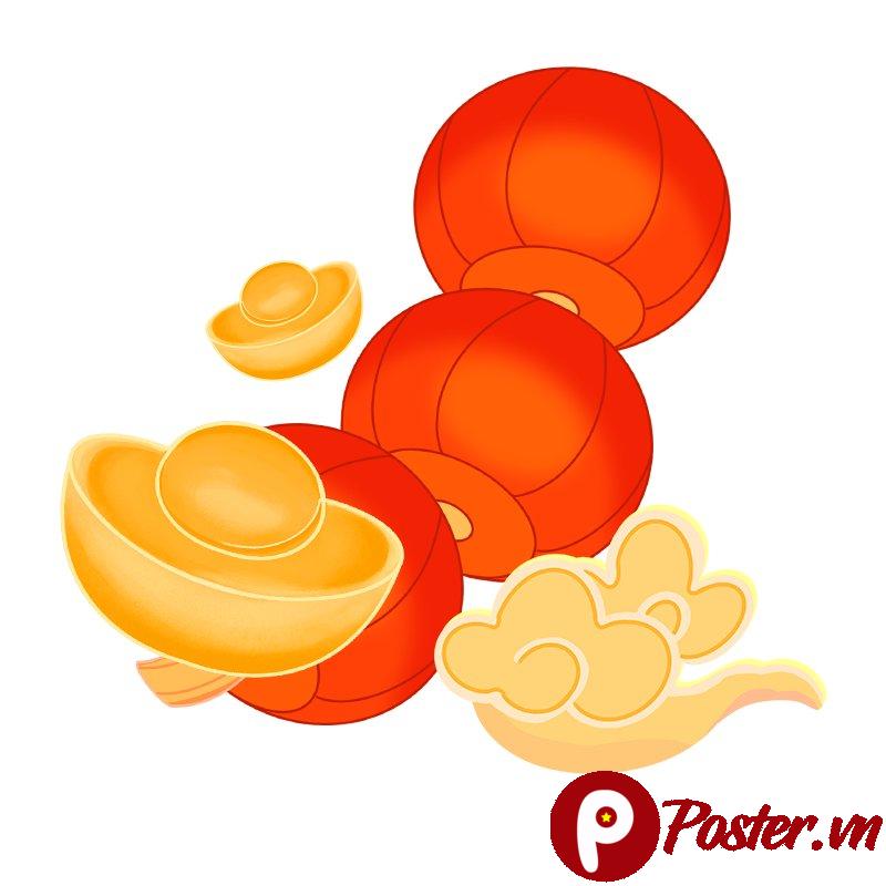 - Bảng Màu Rực Rỡ, Ý Nghĩa: Màu đỏ cam tươi sáng của đèn lồng tượng trưng cho sự may mắn, niềm vui và sự hân hoan. Màu vàng kim óng ánh của kim nguyên bảo và vân mây cát tường đại diện cho tài lộc, thịnh vượng và phú quý. Sự kết hợp này tạo nên một tổng thể tràn đầy năng lượng tích cực, thu hút ánh nhìn.