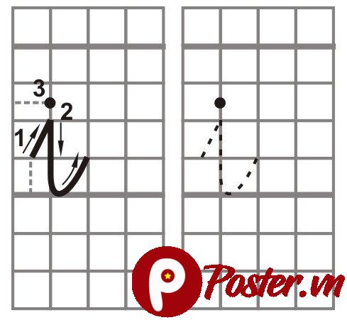 Từ điểm kết thúc của nét hất ở đường kẻ ngang thứ 3, chuyển hướng bút và kéo một nét thẳng xuống dưới, chạm vào đường kẻ ngang thứ 1. Sau đó, uốn cong nhẹ sang phải ở cuối nét để tạo thành một nét móc ngược. Nét móc này cần có độ rộng vừa phải, không quá to cũng không quá nhỏ, đảm bảo chữ ‘i’ không bị gãy hoặc quá gầy.
