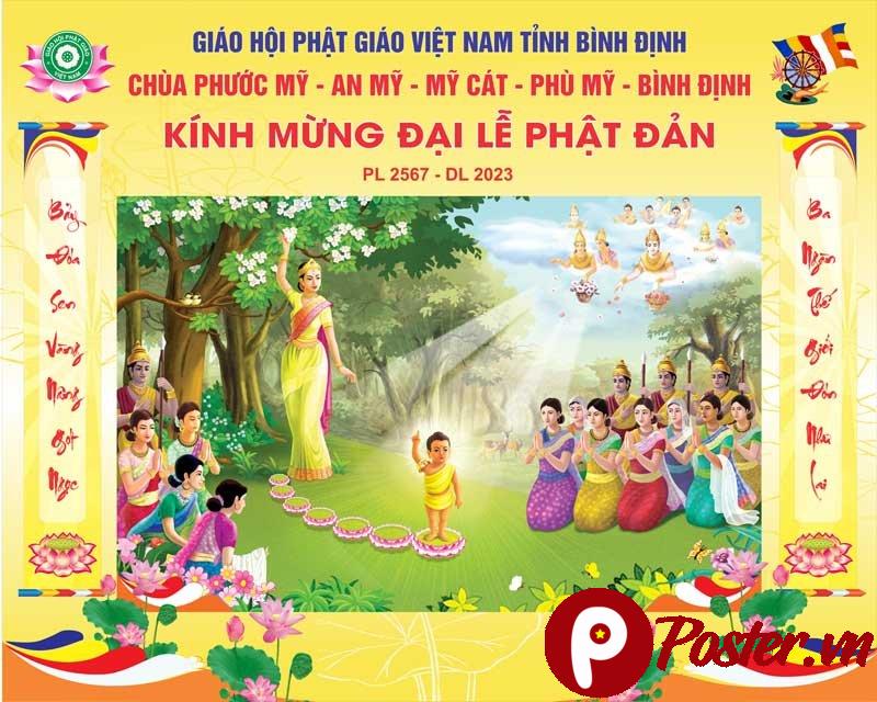 - Thiết kế độc đáo: Mẫu thiết kế được đội ngũ chuyên nghiệp của Poster.vn sáng tạo, mang đậm nét văn hóa Phật giáo và tính thẩm mỹ cao.