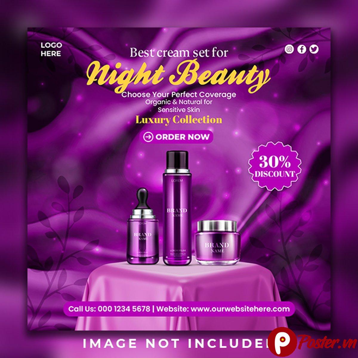 Đừng bỏ lỡ cơ hội nâng tầm chiến dịch quảng cáo của bạn với mẫu banner mỹ phẩm đêm sang trọng này. Tải xuống ngay hôm nay tại Poster.vn và bắt đầu tạo ra những ấn tượng khó quên!