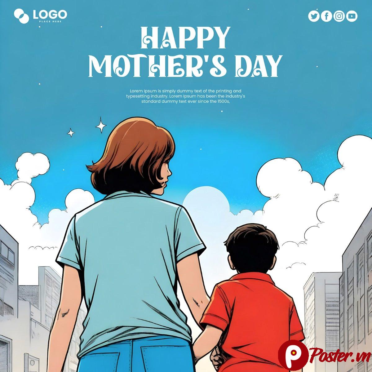 Mẫu banner được thiết kế với hình ảnh người mẹ và con, tượng trưng cho tình mẫu tử thiêng liêng và bền chặt. Màu sắc tươi sáng, bố cục hài hòa cùng thông điệp “Happy Mother’s Day” rõ ràng sẽ giúp bạn truyền tải trọn vẹn tình cảm của mình. Đây là một tác phẩm nghệ thuật đồ họa được tạo ra với sự tận tâm, thể hiện sự trân trọng đối với ngày lễ đặc biệt này.