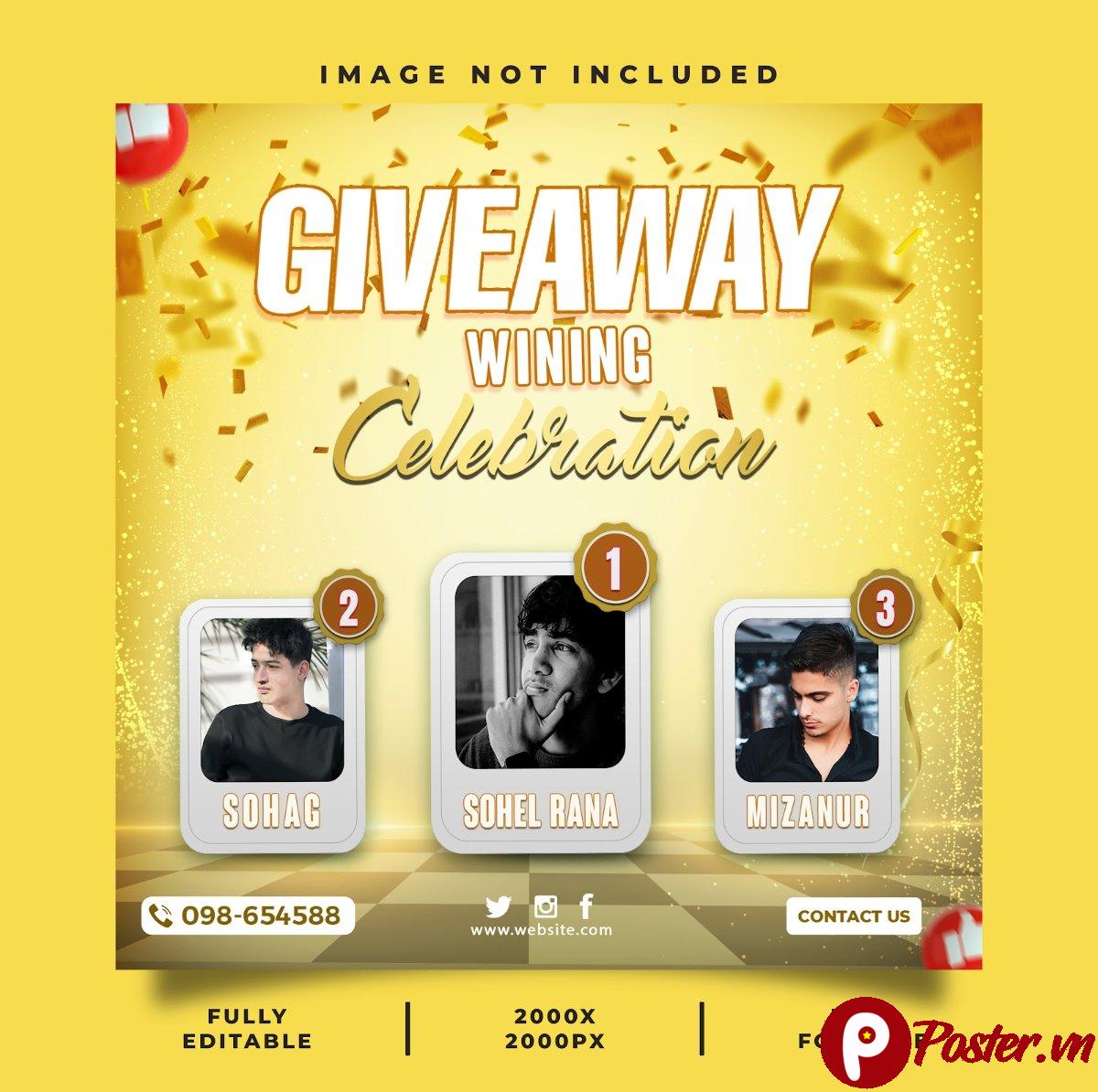 Mẫu Giveaway Winning Celebration. Khám phá mẫu Giveaway Winning Celebration chuyên nghiệp từ Poster.vn. Thiết kế ấn tượng, dễ chỉnh sửa, giúp bạn tạo sự kiện trao giải thu hút và lan tỏa mạnh mẽ trên mạng xã hội.