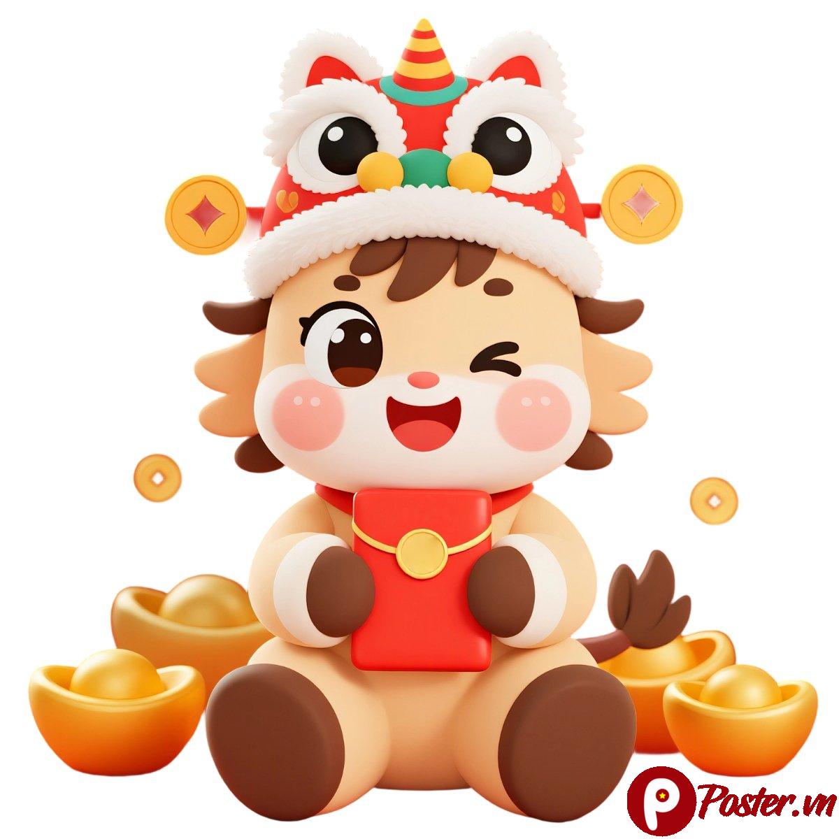 Mẫu ngựa 3D này không chỉ đơn thuần là một hình ảnh, mà là một tác phẩm nghệ thuật kỹ thuật số được chăm chút tỉ mỉ. Với tạo hình chú ngựa con đội mũ lân sư rồng truyền thống, tay ôm bao lì xì đỏ thắm, cùng ánh mắt lấp lánh và nụ cười tươi tắn, mẫu thiết kế này chắc chắn sẽ thu hút mọi ánh nhìn. Đặc biệt, chi tiết đồng tiền vàng và thỏi vàng xung quanh càng làm tăng thêm ý nghĩa tài lộc, phú quý cho năm mới.