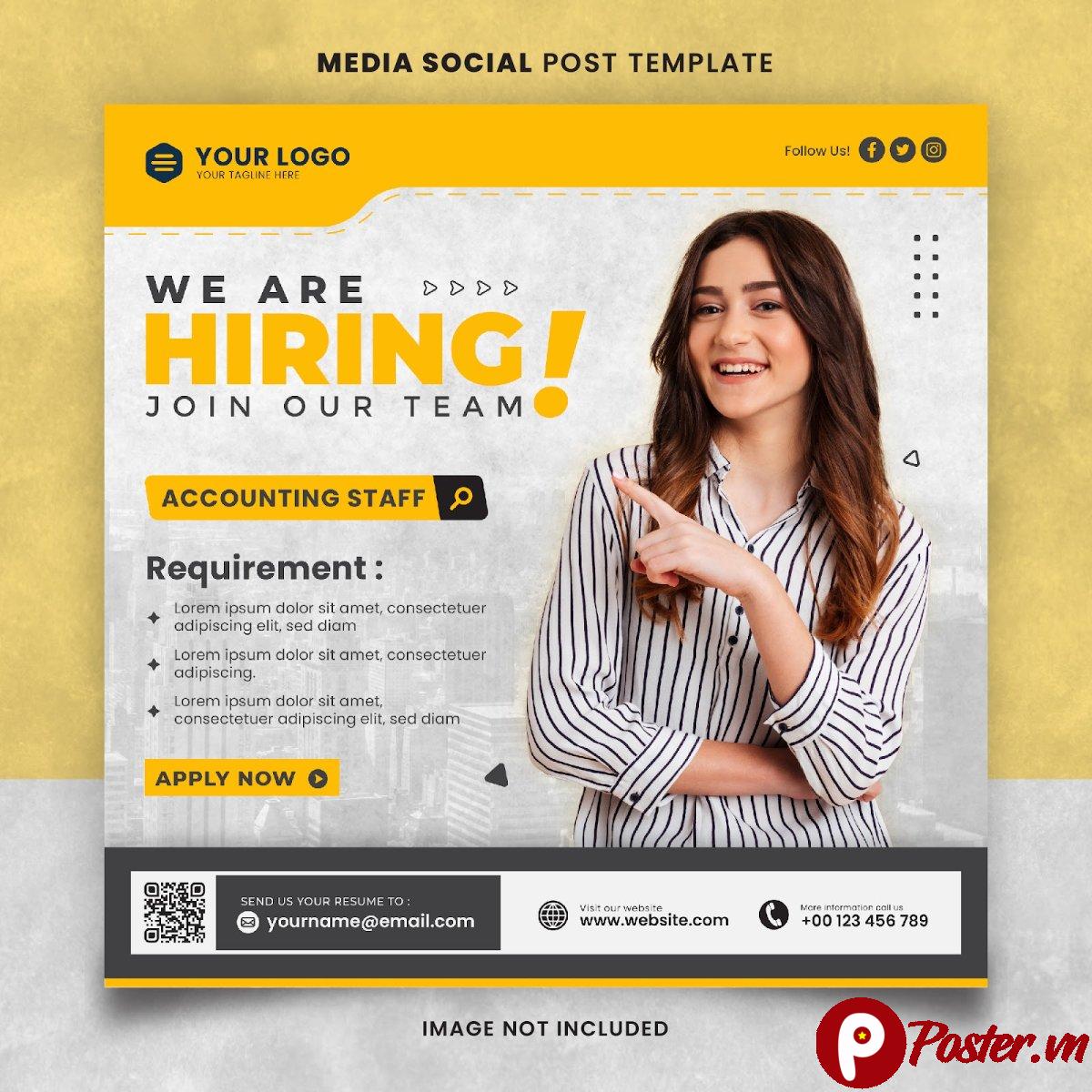 Đừng bỏ lỡ cơ hội thu hút những ứng viên tài năng nhất cho công ty của bạn. Hãy tải ngay mẫu social post tuyển dụng vị trí kế toán trên Poster.vn và bắt đầu chiến dịch tuyển dụng của bạn một cách hiệu quả nhất!