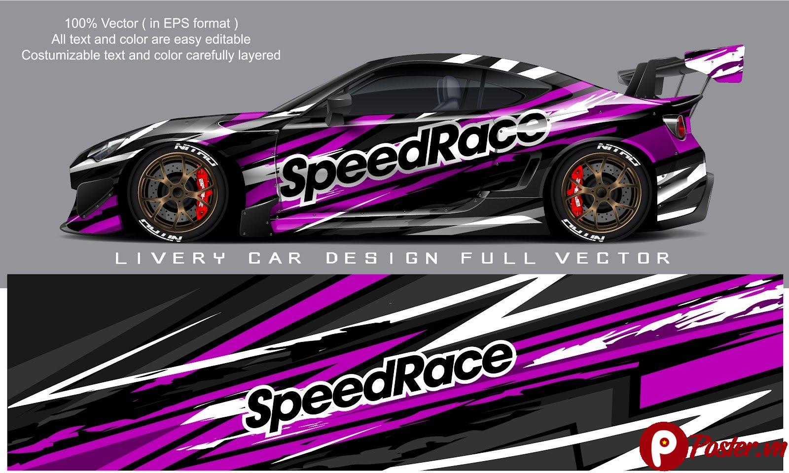 Mẫu Tem Xe Đua Thể Thao Vector Đẹp: Tải ngay mẫu tem xe đua thể thao (livery) chuyên nghiệp định dạng vector EPS. Thiết kế hiện đại với phong cách SpeedRace, phối màu tím đen cực chất cho in ấn decal xe.