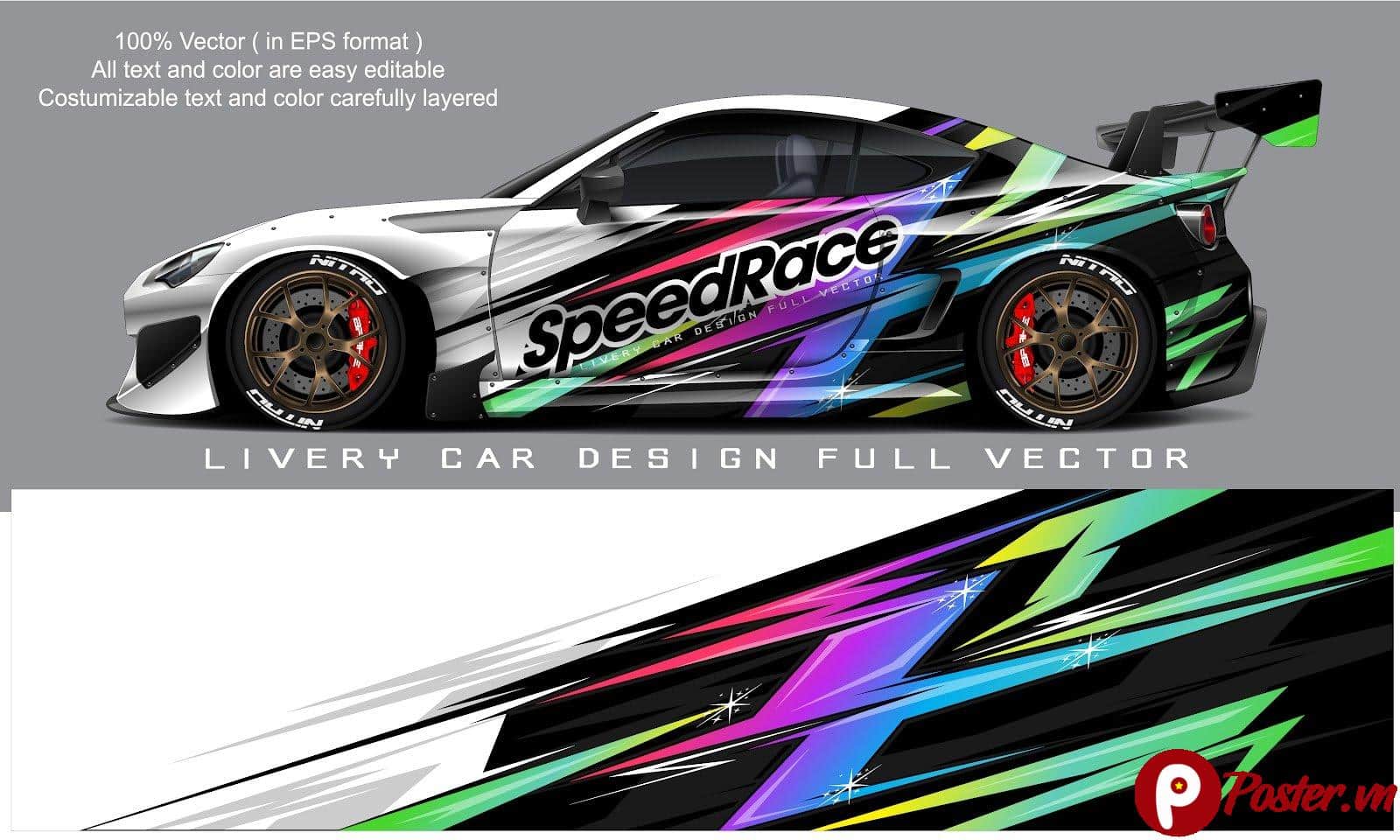 Trong thế giới độ xe và đua xe chuyên nghiệp, bộ tem xe (livery) không chỉ đơn thuần là lớp áo bảo vệ mà còn là linh hồn, khẳng định cá tính và thương hiệu của chủ nhân. Mẫu thiết kế tem xe SpeedRace mà Poster.vn giới thiệu hôm nay là một tác phẩm nghệ thuật đồ họa kỹ thuật số đỉnh cao, kết hợp giữa phong cách hiện đại và tinh thần tốc độ mãnh liệt. Với sự phối hợp màu sắc táo bạo và các hình khối cơ bản nhưng đầy đột phá, mẫu tem này hứa hẹn sẽ biến bất kỳ chiếc xe nào trở thành tâm điểm của mọi sự chú ý trên đường đua cũng như trên phố.
