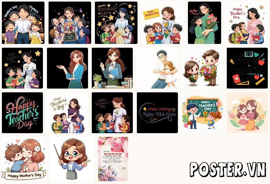 Đừng bỏ lỡ cơ hội tạo nên một không gian lễ kỷ niệm Ngày Nhà giáo Việt Nam trang trọng, ý nghĩa và đầy cảm hứng với bộ sưu tập 10+ mẫu thiết kế 20-11 đẹp, sáng tạo và độc đáo nhất 2025 từ Thư viện đồ họa Poster.vn. Hãy truy cập Poster.vn ngay hôm nay để khám phá và tải về những tài nguyên tuyệt vời nhất, hoặc nâng cấp các gói thành viên VIP phù hợp để tải ảnh không giới hạn tại link: https://poster.vn/vi/danh-muc-san-pham/membership/. Nếu bạn cần tư vấn thêm về cách chọn, thiết kế hay in ấn các ấn phẩm 20-11, đội ngũ chuyên nghiệp của chúng tôi luôn sẵn lòng hỗ trợ qua Hotline: 0813.6666.73 hoặc ghé thăm địa chỉ: HaTay Millenium, 4 Đ. Quang Trung, P. Yết Kiêu, Hà Đông, Hà Nội. Chúng tôi tin rằng, với sự hỗ trợ của Thư viện đồ họa Poster.vn, các ấn phẩm của bạn sẽ đạt hiệu quả vượt trội, được đông đảo đối tượng chia sẻ, lưu lại và ghim bài, tạo nên sức lan tỏa mạnh mẽ trên các nền tảng, tôn vinh giá trị và vẻ đẹp của người phụ nữ Việt Nam.