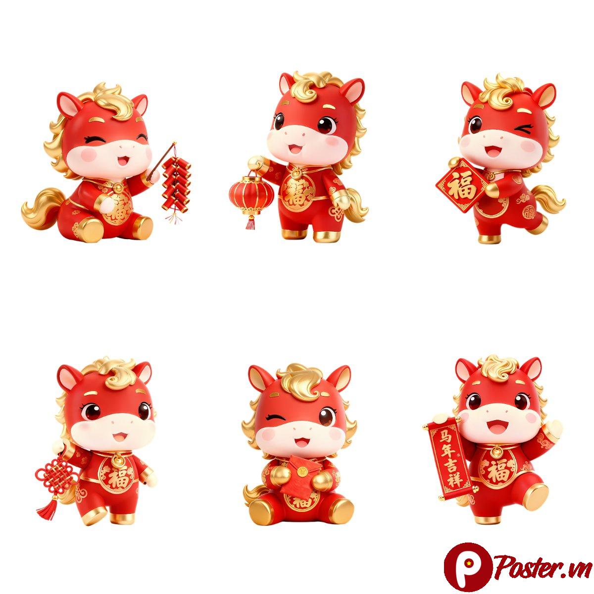 Các mô hình ngựa 3D trong bộ sưu tập này được tạo hình với nhiều phong cách khác nhau. Có những chú ngựa cầm đèn lồng, cầm câu đối đỏ, cầm pháo tết, hay đơn giản là những chú ngựa với biểu cảm vui tươi, hớn hở. Sự đa dạng này giúp bạn dễ dàng lựa chọn mô hình phù hợp nhất với ý tưởng thiết kế của mình, từ banner quảng cáo, poster sự kiện đến các ấn phẩm trang trí nhà cửa.