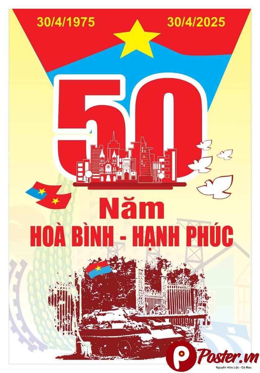 Ngày 30 tháng 4 là một trong những ngày lễ trọng đại nhất của dân tộc Việt Nam, đánh dấu sự kiện lịch sử Giải phóng miền Nam, thống nhất đất nước. Năm 2025, chúng ta sẽ kỷ niệm 50 năm ngày chiến thắng vẻ vang này (30/4/1975 – 30/4/2025). Để hòa chung không khí hân hoan và trang trọng đó, Poster.vn tự hào giới thiệu mẫu poster 30/4 vector kỷ niệm 50 năm Hòa Bình – Hạnh Phúc, một tài nguyên thiết kế không thể thiếu cho các hoạt động tuyên truyền, sự kiện.