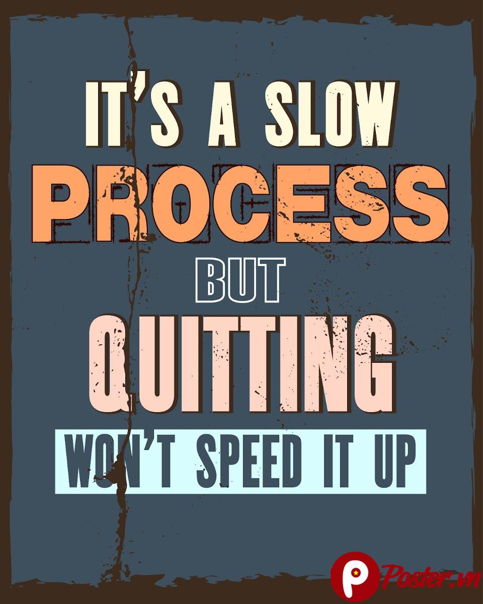 Trong cuộc sống và công việc, đôi khi chúng ta cảm thấy nản lòng trước những thử thách và quá trình dài để đạt được mục tiêu. Chính vì vậy, những thông điệp truyền cảm hứng, những câu nói động lực trở thành nguồn năng lượng quý giá giúp chúng ta tiếp tục tiến lên. Poster.vn tự hào giới thiệu mẫu poster động lực với thông điệp mạnh mẽ: “It’s A Slow Process But Quitting Won’t Speed It Up” – một lời nhắc nhở sâu sắc về sự kiên trì và tầm quan trọng của việc không bỏ cuộc.