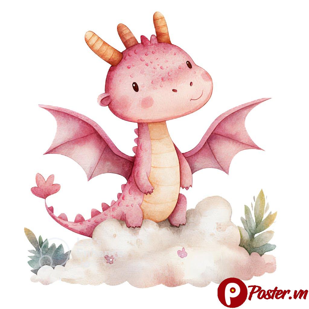 Hình ảnh rồng con màu hồng, đang ngồi trên đám mây trắng, cùng với những cây xương rồng nhỏ xung quanh, tạo nên một khung cảnh thần tiên, mơ mộng. Đây là một ví dụ điển hình cho sự sáng tạo không giới hạn mà bạn có thể tìm thấy tại Poster.vn.