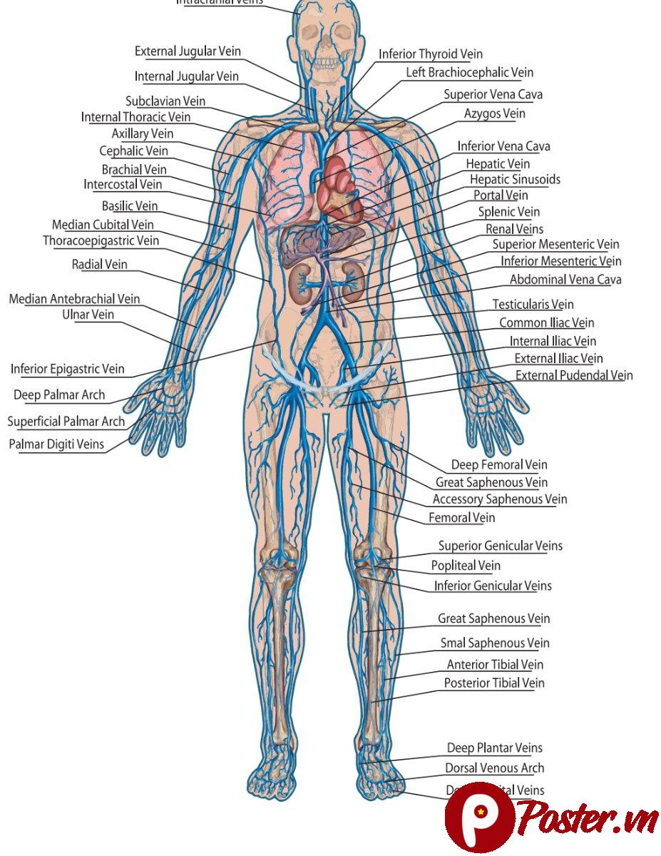 Tài nguyên này tại Poster.vn được xây dựng dựa trên kiến thức y học chính xác, đảm bảo tính khoa học và độ tin cậy. Mỗi thành phần của hệ tuần hoàn, từ các tĩnh mạch lớn như tĩnh mạch chủ đến các nhánh nhỏ hơn, đều được chú thích rõ ràng, giúp người dùng dễ dàng nhận diện và nghiên cứu.