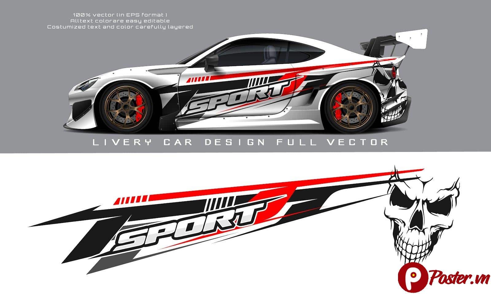 Mẫu Tem Xe Ô Tô Thể Thao Vector Đẹp: Tải mẫu thiết kế tem xe ô tô thể thao (livery) chuyên nghiệp định dạng EPS. Bộ decal hầm hố với tone màu đỏ-đen-trắng, bao gồm phối cảnh 3D và file vector chi tiết.