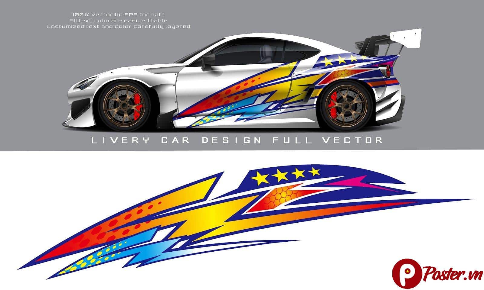 Mẫu thiết kế này không chỉ bó hẹp trong việc dán decal xe ô tô thật. Bạn có thể sử dụng nó cho nhiều mục đích khác nhau trong ngành đồ họa: