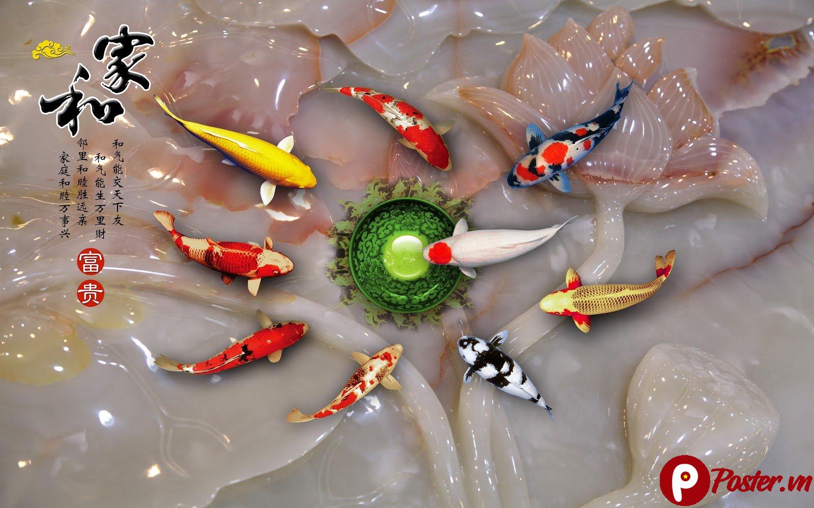 Tranh cá Koi phong thủy 3D cao cấp: Tải file tranh cá Koi phong thủy 3D giả ngọc tuyệt đẹp, chất lượng cao 21MB, phù hợp cho in ấn tranh dán tường và trang trí nội thất sang trọng.